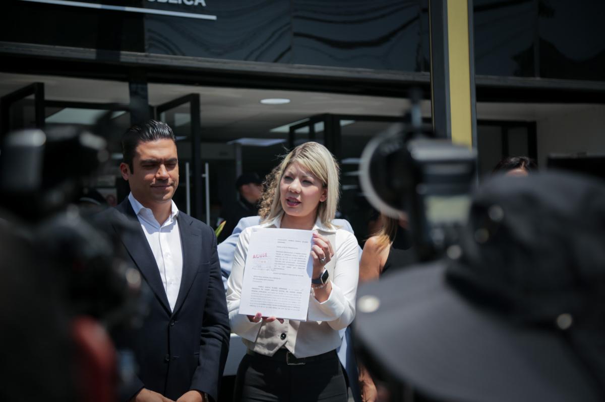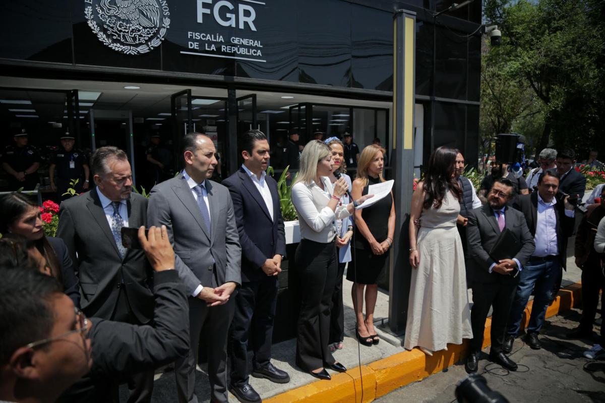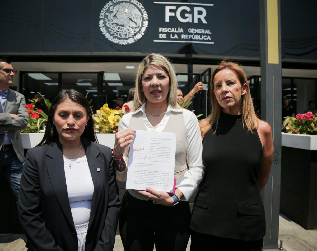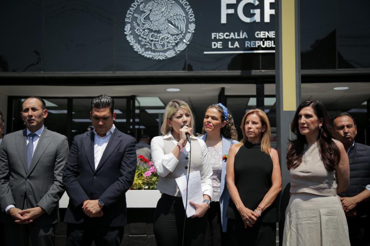 La denuncia fue presentada personalmente por la presidenta estatal del PAN la tarde de este martes en la sede de la FGR en la Ciudad de México. Estuvo acompañada por el presidente nacional del PAN, Jorge Romero, el abogado Roberto Gil Zuarth y legisladores del partido.